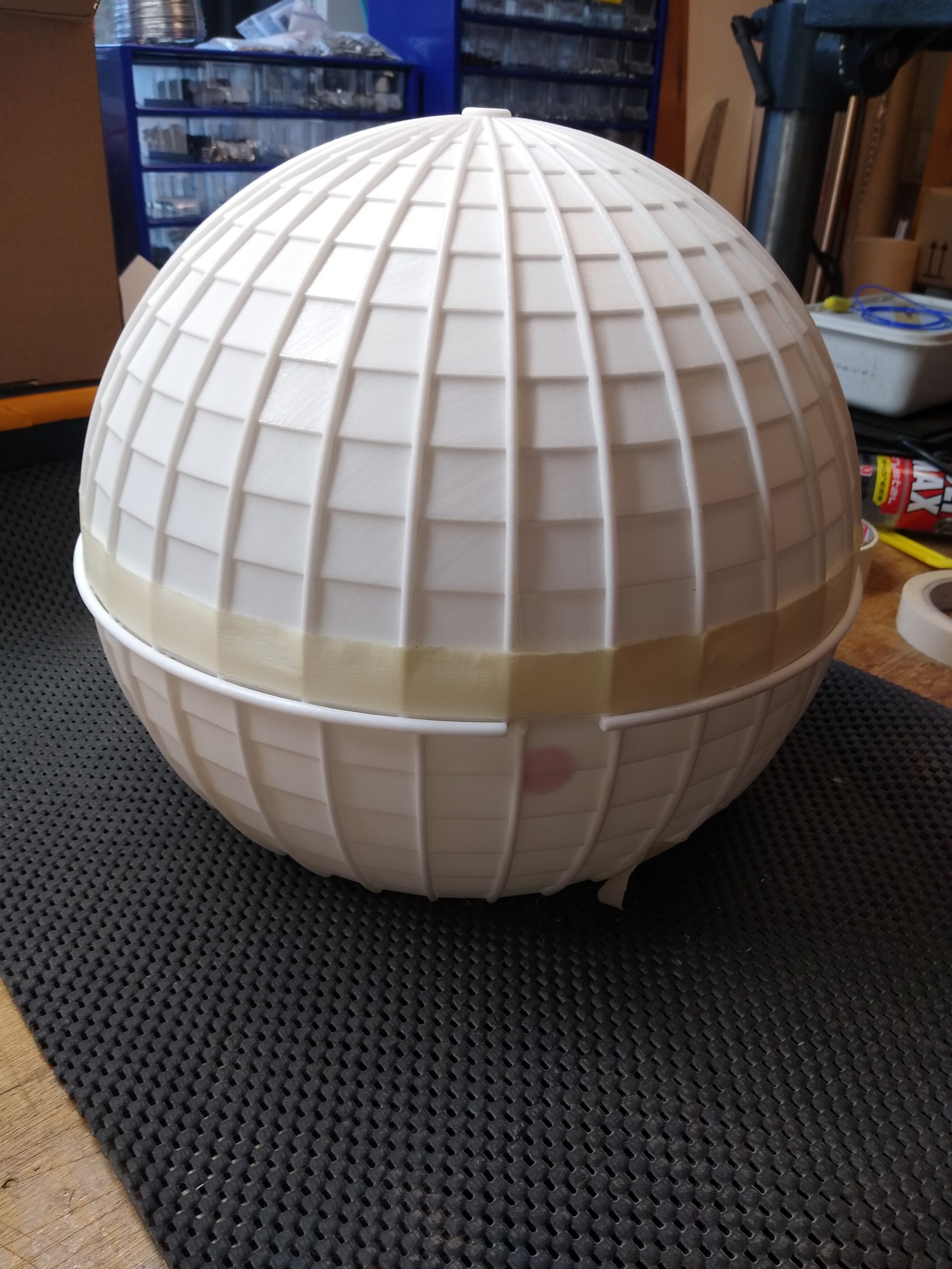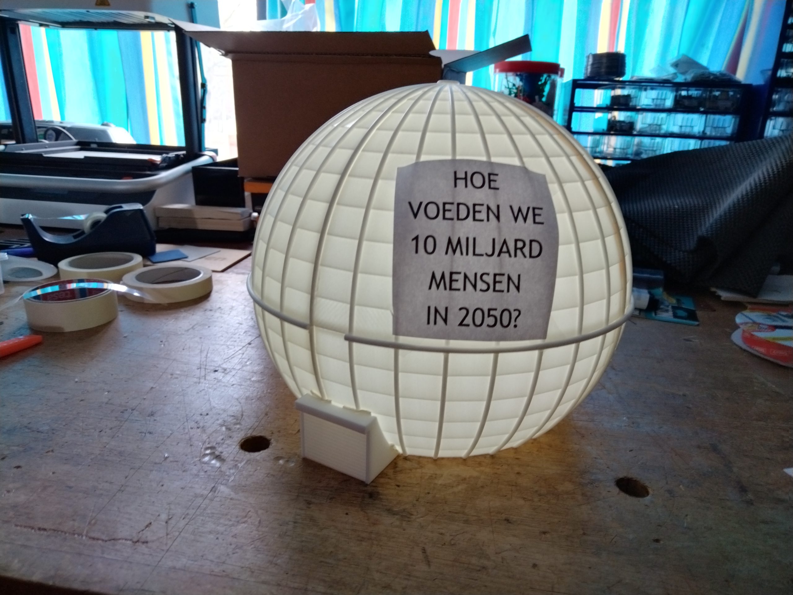 We hebben de uitdaging aangenomen om dit te doen in de nogal korte doorlooptijd van 4 weken deze bol te modelleren, te laten 3D Printen en samenstellen. Daarmee moest het schaalmodel natuurlijk zo veel mogelijk lijken op het origineel en moesten de teksten en het logo van het WFCD ook worden aangebracht.