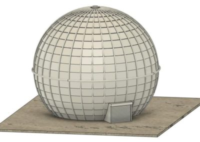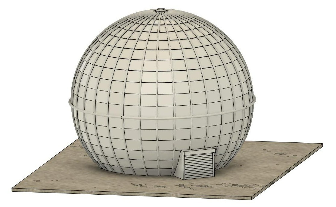Dit vreemde afwijkende gebouw met zijn bolvormig uiterlijk, twintig meter hoog, wordt vaak aangezien voor een radarkoepel. In feite was deze grijze bol niets meer of minder dan de buitenkant van een gigantisch projectiescherm. Binnenin deze constructie was een leslokaal om de militairen te leren schieten met de Stinger, een draagbare infraroodgeleide luchtdoelraket.